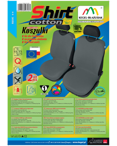 COTTON shirt covers (now SHIRT COTTON – an improved version of shirt covers that have been manufactured for over 17 years) are made of high-quality natural material (100% cotton) , which, combined with the careful finishing of even the smallest details, will satisfy the most demanding customers. Thanks to their appropriate design and innovative construction, the covers fit well on the seats and adhere to them well, and the laminating of the entire material on the inside with PUR foam prevents them from sliding. SHIRT COTTON covers are over 20% larger than their previous version, which makes them a much better fit for the seats of currently manufactured cars. This is because the seats of newer cars are larger than those of cars from 15 years ago. A new feature of the shirt covers is that they cover the entire usable part of the seat, thus better protecting the seat from damage and dirt. However, they do not cover the sides of the seat, so they can be safely used on seats with airbags. Shirt covers oprotect and, at the same time, noticeably change the appearance of car seats, giving the car a unique character.