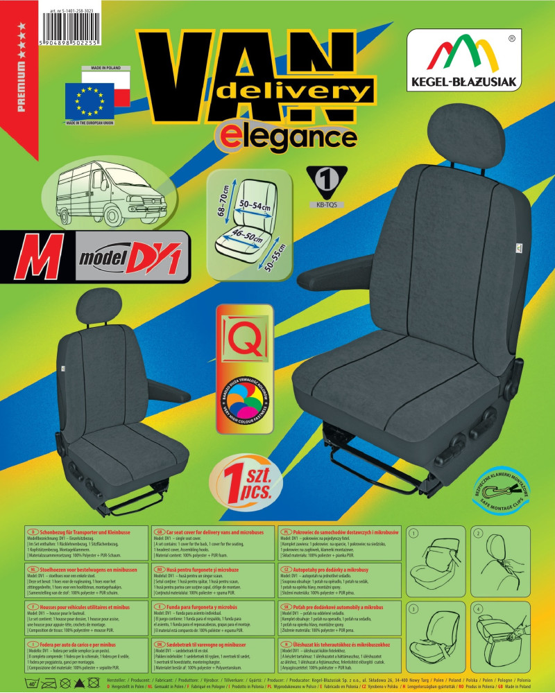 The covers have special, secure seams for airbags, making them suitable for cars with both side airbags in the seats and standard seats. Professional workmanship and safety of use are confirmed by a certificate and tests carried out by the Motor Transport Institute.