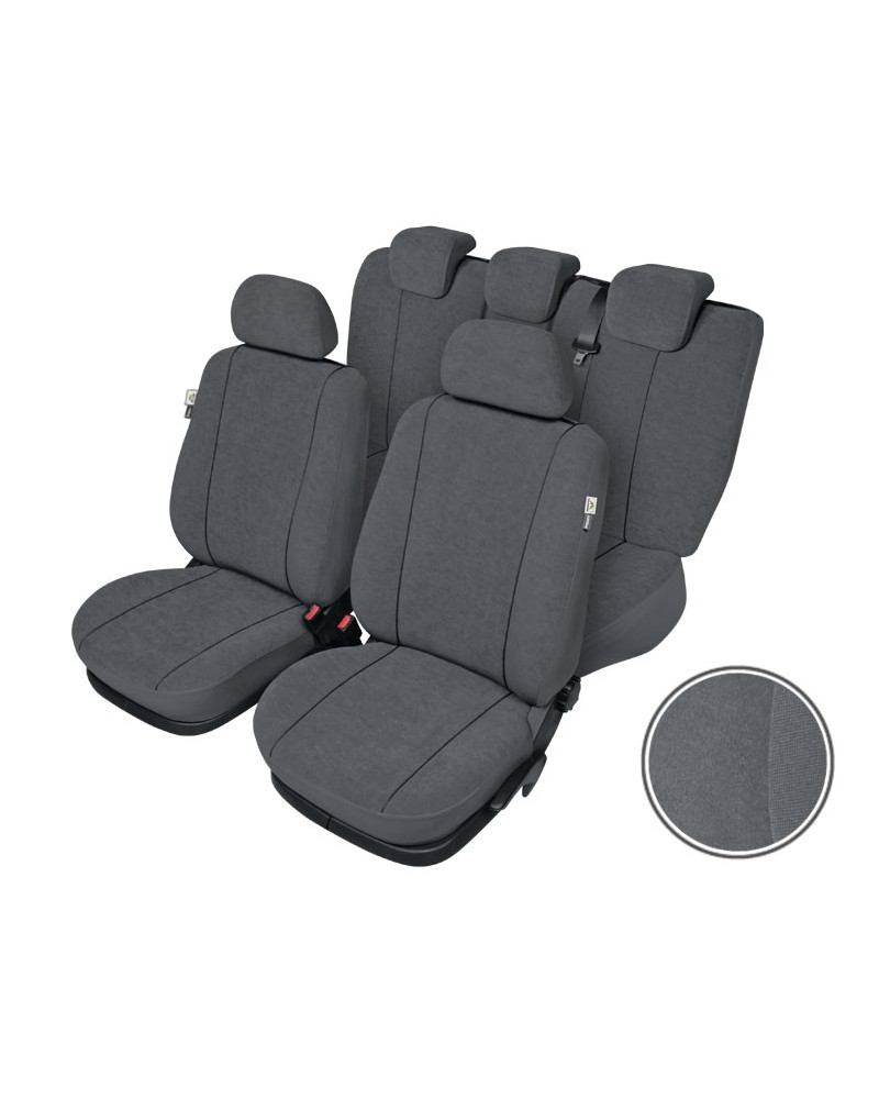 Well-fitted ELEGANCE covers – extremely elegant and safe covers for passenger cars. They fit well thanks to their appropriate design and suitability for specific car models. Laminated on the inside with PUR foam, they ensure good adhesion to the upholstery. They are renowned for their very pleasant and soft velour fabric, which looks extremely good in the interior of any car. The material is of the highest quality. It is a type of upholstery fabric that is resistant to abrasion and tearing. ELEGANCE car covers are characterised by their aesthetic and careful workmanship and precise finish. Thanks to them, the original car upholstery will remain in good condition for a long time. The grey, calm, uniform colour scheme will refresh the interior of your car and add elegance and class. Appearance goes hand in hand with functionality, as the covers protect the original upholstery very well against all kinds of dirt and most types of damage. Become the owner of the most stunning interior!