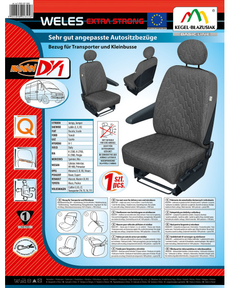 We offer WELES Extra Strong covers at a very attractive price. However, it is worth mentioning that their quality is in no way inferior to more expensive models. These are the most functional and well-fitting car covers available on the Polish market in this price range. They have been carefully designed and thoroughly tested, which is why they fit specific car seats almost as well as custom-made covers – they fit the seats well and reflect most of their details. All structural elements have been carefully prepared and well finished. Thanks to Velcro fastenings, which allow them to be put on without removing the headrests, they are very easy to fit on the seats. The set is equipped with special clips, and fasteners are sewn into the fabric, which, with the help of the included illustrated instruction manual, ensures very easy installation.