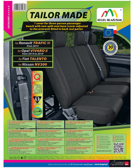 TAILOR MADE covers are made of high-quality upholstery fabric (both front and back), which, combined with careful attention to even the smallest details, will satisfy the most demanding customers. Thanks to their appropriate, spacious design and specific fit to your car, the covers fit the seats perfectly. The fabric adheres perfectly to the seats, replacing their original upholstery. Laminating the entire fabric on the inside with flame-retardant PUR foam prevents them from slipping.