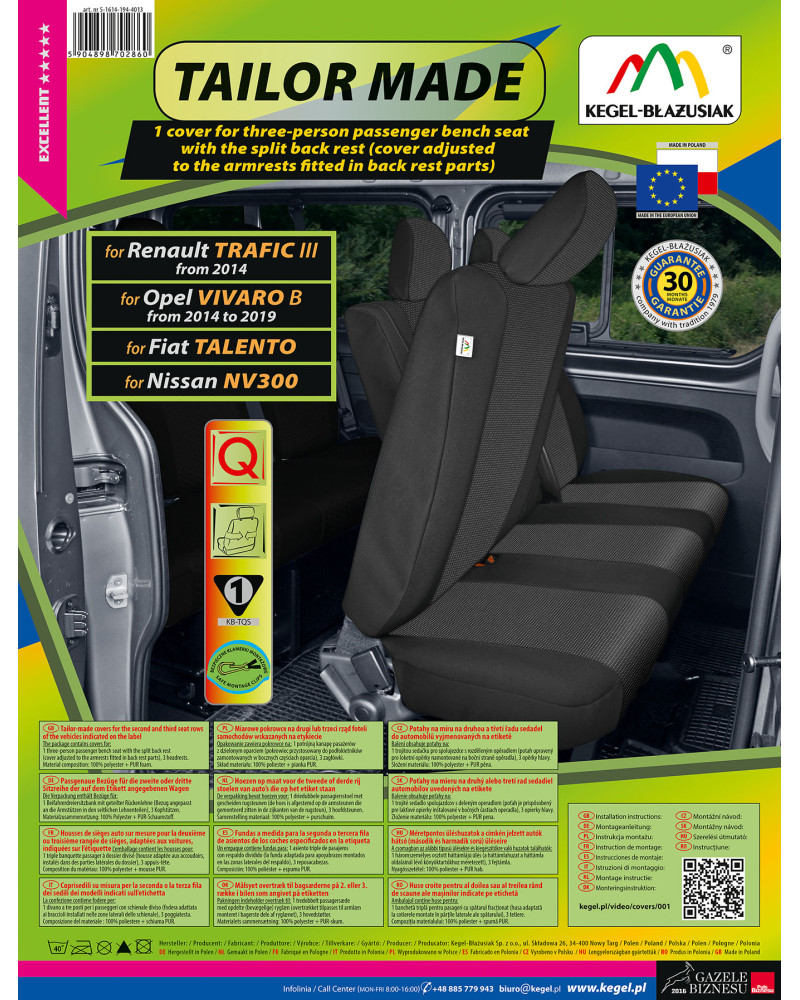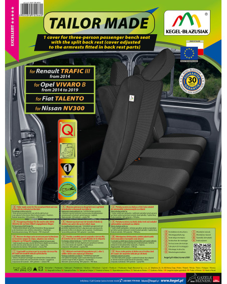 TAILOR MADE covers are made of high-quality upholstery fabric (both front and back), which, combined with careful attention to even the smallest details, will satisfy the most demanding customers. Thanks to their appropriate, spacious design and specific fit to your car, the covers fit the seats perfectly. The fabric adheres perfectly to the seats, replacing their original upholstery. Laminating the entire fabric on the inside with flame-retardant PUR foam prevents them from slipping.