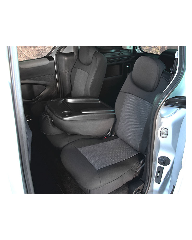 - 2 front seats (the covers adapted for the armrests fitted in the back rest sides and for the tables in the back rest rear side)