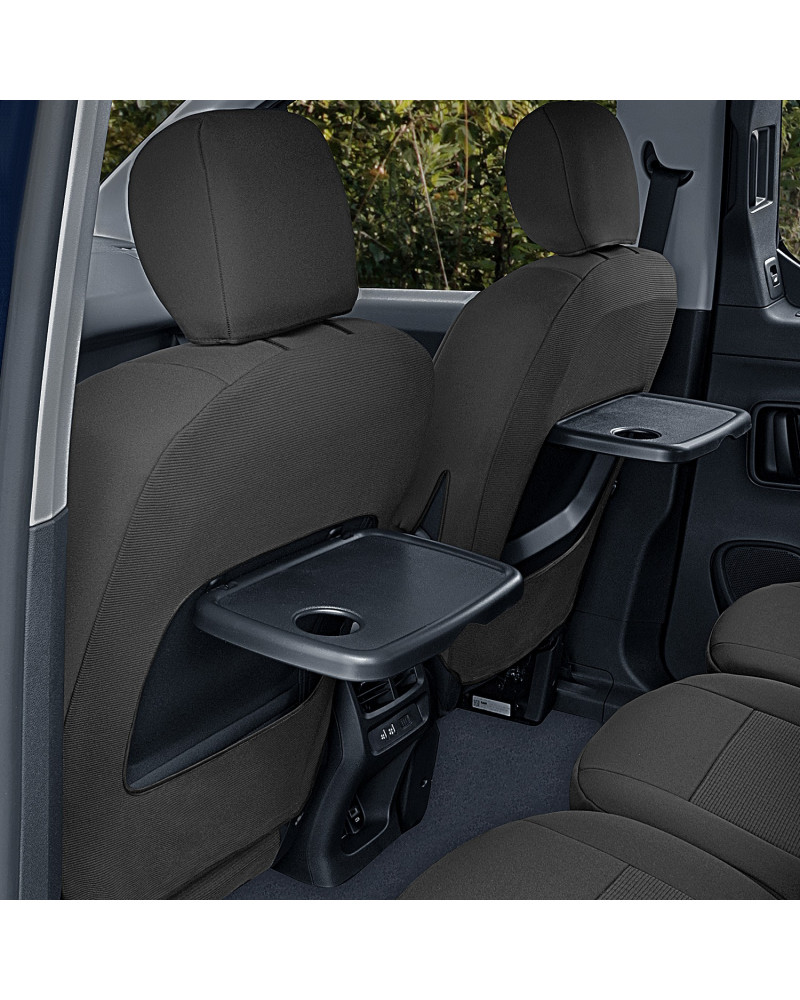 - 2 front seats (the covers adapted for the armrests fitted in the back rest sides and for the tables in the back rest rear side)