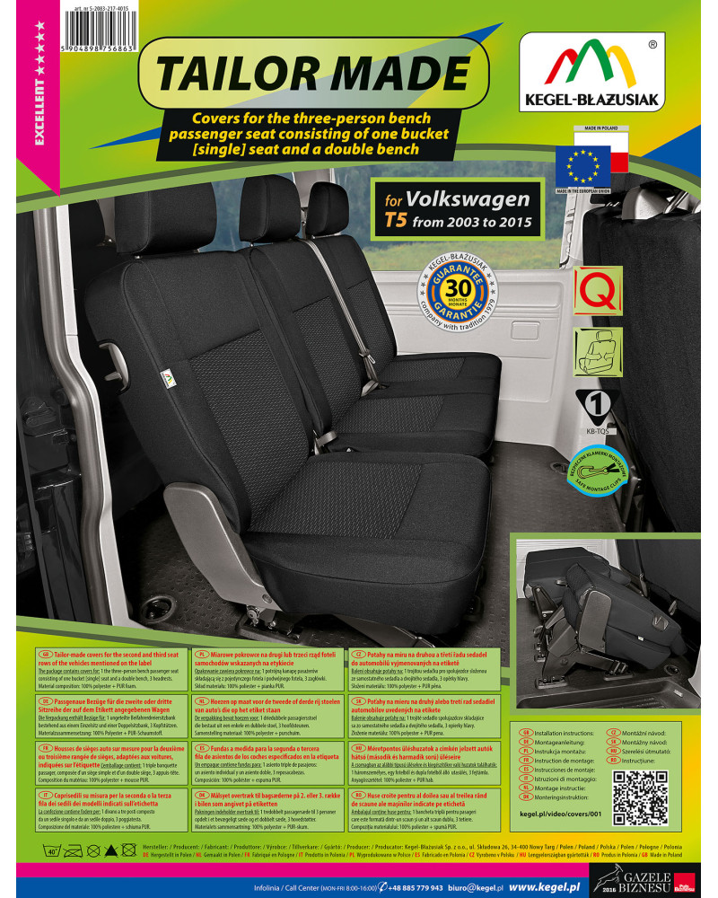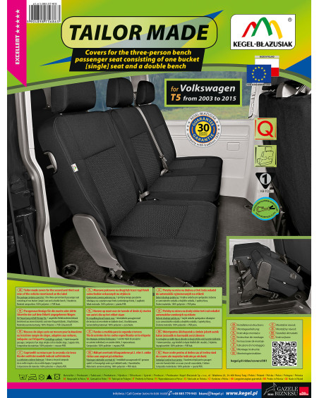 TAILOR MADE covers are made of high-quality upholstery fabric (both front and back), which, combined with careful attention to even the smallest details, will satisfy the most demanding customers. Thanks to their appropriate, spacious design and specific fit to your car, the covers fit the seats perfectly. The fabric adheres perfectly to the seats, replacing their original upholstery. Laminating the entire fabric on the inside with flame-retardant PUR foam prevents them from slipping.