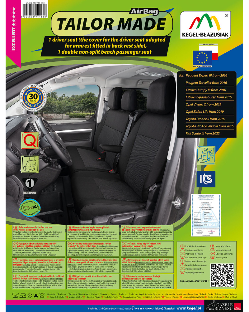 The covers have special, secure seams for airbags, making them suitable for cars with both side airbags in the seats and standard seats. Professional workmanship and safety of use are guaranteed by certification and testing by the Motor Transport Institute.