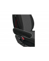 - Put the cover on the backrest by placing it under the safety belts (unfasten the zip).