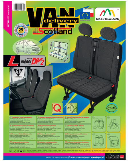 SCOTLAND well-fitted covers provide both safety and comfort for users. Made of the highest quality strong and flame-retardant material, they create an extraordinary aesthetic impression while protecting your car's upholstery from damage and dirt. Sewn for specific car models, taking into account all structural elements, they ensure a very good fit. The upholstery material from which the covers are made meets the highest strength standards - it is strong and durable. Maintained in dark, subdued colours, they look great in the interior of any vehicle. The tasteful white pattern on black fabric adds style and elegance. The innovative design and regularity ensure that the covers fit well on the seats of specific car models, and thanks to PUR foam lamination, they are highly adhesive. Enhance the interior of your car with a top-quality product.