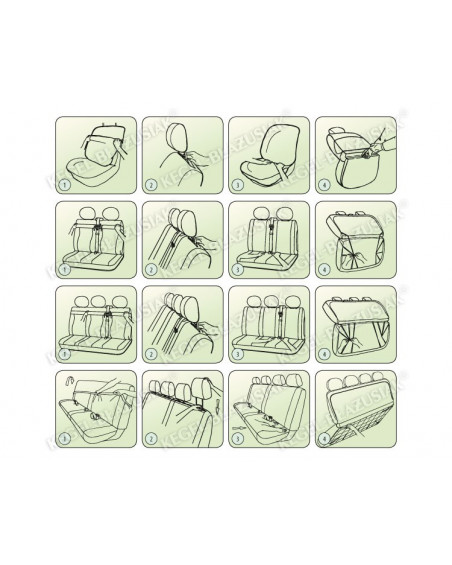 - Place the headrest covers on the seat headrests.