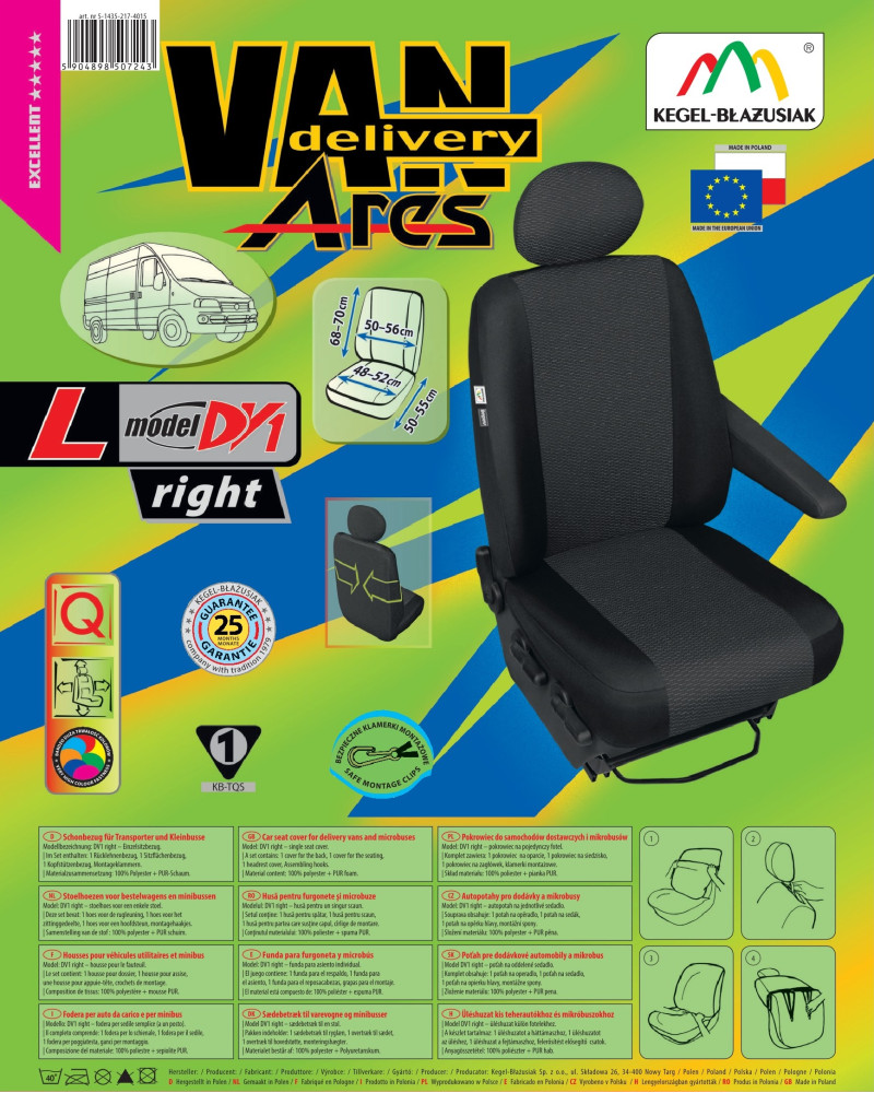 The well-fitting ARES covers are made of high-quality jacquard fabric, which, combined with the careful finishing of even the smallest details, will satisfy the most demanding customers. Thanks to their design, the covers fit the seats well, and the flame-retardant PUR foam laminated on the inside of the entire material prevents them from slipping. The offer is aimed at car owners who want to take care of the interior of their vehicles and add style and elegance. ARES car covers provide excellent protection for the original car upholstery against wear and tear, and their tasteful, classic design creates a positive aesthetic impression. The subdued colour scheme – black with a delicate grey texture – will fit perfectly into the interior of any car. Thanks to their appropriate, spacious design, the covers fit the seats well. The material adheres perfectly to the seats, replacing their original upholstery. These are the exact materials used to make the original seat covers for new vehicles for car factories. The advantage of ARES covers is that they cover the entire rear surface of the backrest. This feature makes them look very good from the back of the seat, while protecting it from dirt and damage (this is especially important for people with small children). Professional workmanship and high-quality materials guarantee a long service life.