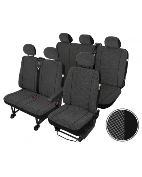 SCOTLAND well-fitted covers provide both safety and comfort for users. Made of the highest quality strong and flame-retardant material, they create an extraordinary aesthetic impression while protecting your car's upholstery from damage and dirt. Sewn for specific car models, taking into account all structural elements, they ensure a very good fit. The upholstery material from which the covers are made meets the highest strength standards - it is strong and durable. Maintained in dark, subdued colours, they look great in the interior of any vehicle. The tasteful white pattern on black fabric adds style and elegance. The innovative design and regularity ensure that the covers fit well on the seats of specific car models, and thanks to PUR foam lamination, they are highly adhesive. Enhance the interior of your car with a top-quality product.