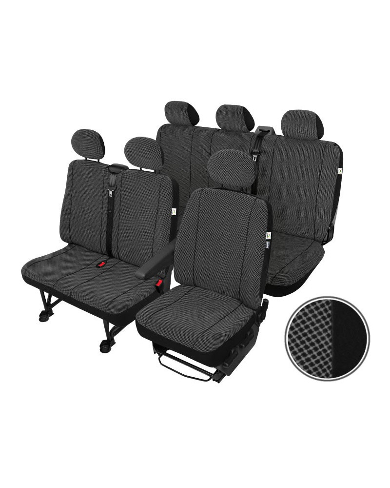 SCOTLAND well-fitted covers provide both safety and comfort for users. Made of the highest quality strong and flame-retardant material, they create an extraordinary aesthetic impression while protecting your car's upholstery from damage and dirt. Sewn for specific car models, taking into account all structural elements, they ensure a very good fit. The upholstery material from which the covers are made meets the highest strength standards - it is strong and durable. Maintained in dark, subdued colours, they look great in the interior of any vehicle. The tasteful white pattern on black fabric adds style and elegance. The innovative design and regularity ensure that the covers fit well on the seats of specific car models, and thanks to PUR foam lamination, they are highly adhesive. Enhance the interior of your car with a top-quality product.