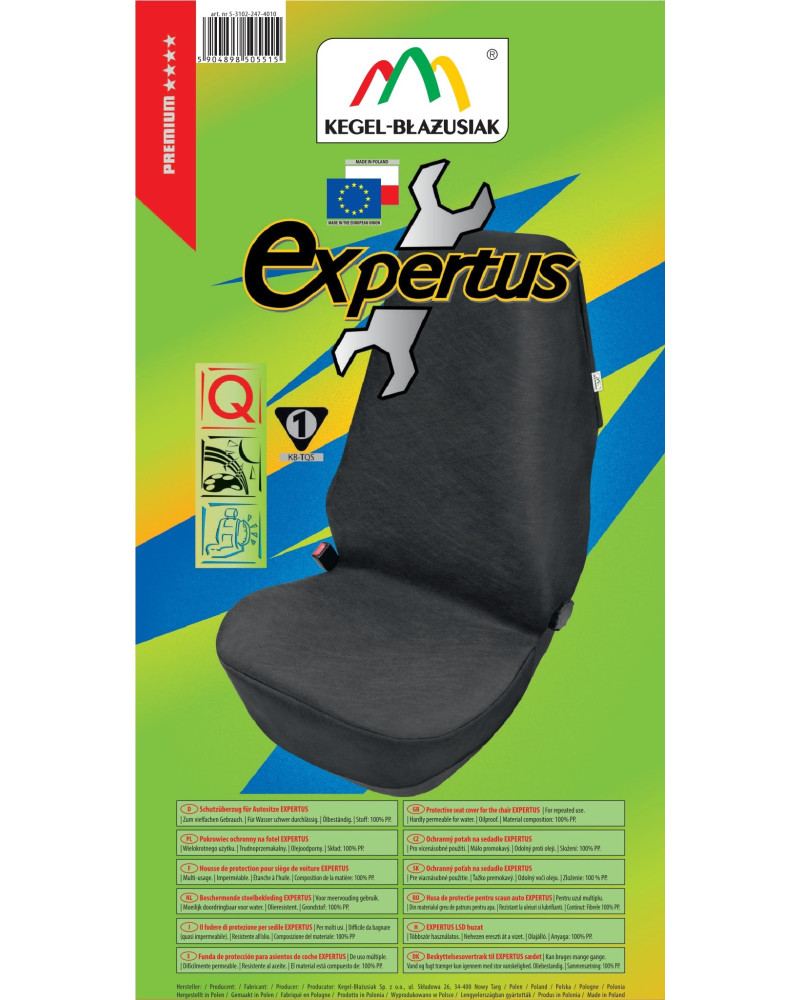 Protective/service cover EXPERTUS – oil-resistant and water-repellent – designed to protect the seat upholstery from all kinds of dirt and prevent damage. Made of durable, strong, high-quality SPUNBOND non-woven fabric, it provides excellent protection for the seat. The dark colour of the cover makes it very practical to use. The material is laminated with PUR foam, which prevents the cover from sliding on the seat. The cover is adapted to AirBag side cushions. Made in a universal size, it fits all standard car seats. Very easy to install and clean. High quality at a great price!