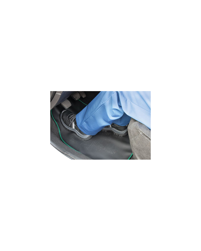 PROTECTUS protective mat – made of new generation eco-leather – waterproof, oil-resistant, grease-resistant. Designed for car mechanics, service station employees, people who drive in dirty work boots, as well as those who want to protect their car's carpet in an aesthetic way during everyday use. The PROTECTUS mat effectively protects the floor covering or mats of a serviced car from dirt and damage. The inside is lined with soft non-woven fabric that gently adheres to the upholstery. An eco-friendly, reusable product. Professionally made of strong, durable material, it is characterised by a long service life. Made in a universal size - for use in any car model. The product is easy to clean.