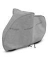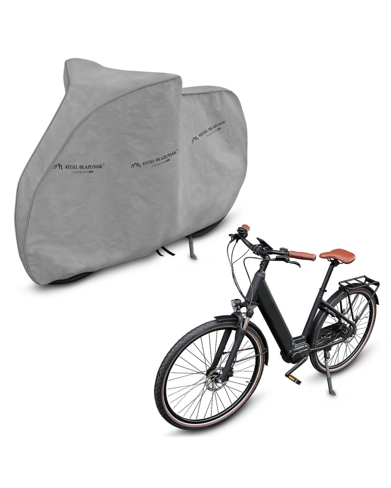 Membrane, waterproof and at the same time vapour permeable cover to protect your e-bike from adverse environmental influences. Weatherproof cover made entirely from a highly vapour-permeable membrane. Impermeable even in heavy rain and at the same time vapour permeable, it transports moisture away from under the cover. Reduces corrosion and ageing of plastic parts, protects against fading and tarnishing of paintwork and chrome parts. Suitable for short-term outdoor storage of the bicycle. An elastic puller, attached to the cover, makes it easy to put it on and take off the bike. Extra attachments to wheels and the fastener placed underneath prevent the cover from being ripped off by the wind. Also suitable for indoor use and for a bicycle without an electric drive.