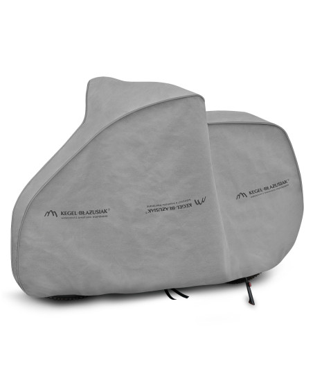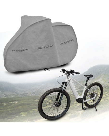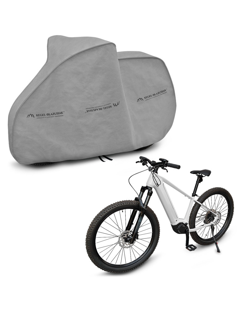 Membrane, waterproof and at the same time vapour permeable cover to protect your e-bike from adverse environmental influences. Weatherproof cover made entirely from a highly vapour-permeable membrane. Impermeable even in heavy rain and at the same time vapour permeable, it transports moisture away from under the cover. Reduces corrosion and ageing of plastic parts, protects against fading and tarnishing of paintwork and chrome parts. Suitable for short-term outdoor storage of the bicycle. An elastic puller, attached to the cover, makes it easy to put it on and take off the bike. Extra attachments to wheels and the fastener placed underneath prevent the cover from being ripped off by the wind. Also suitable for indoor use and for a bicycle without an electric drive.