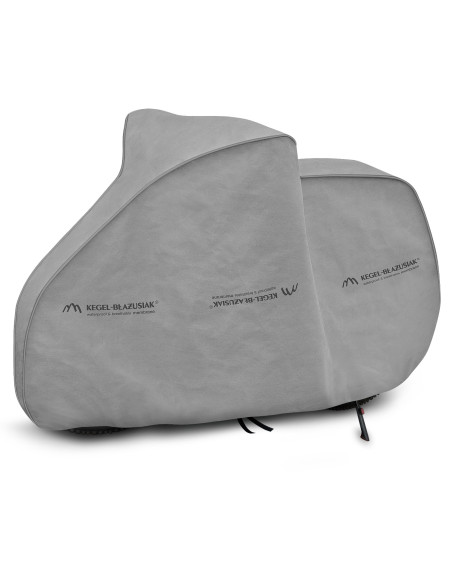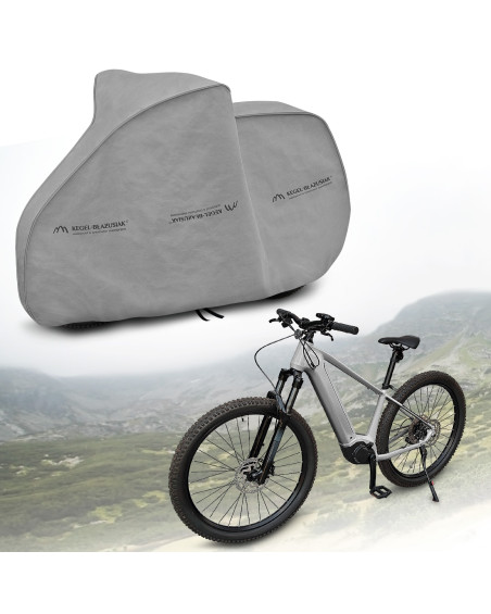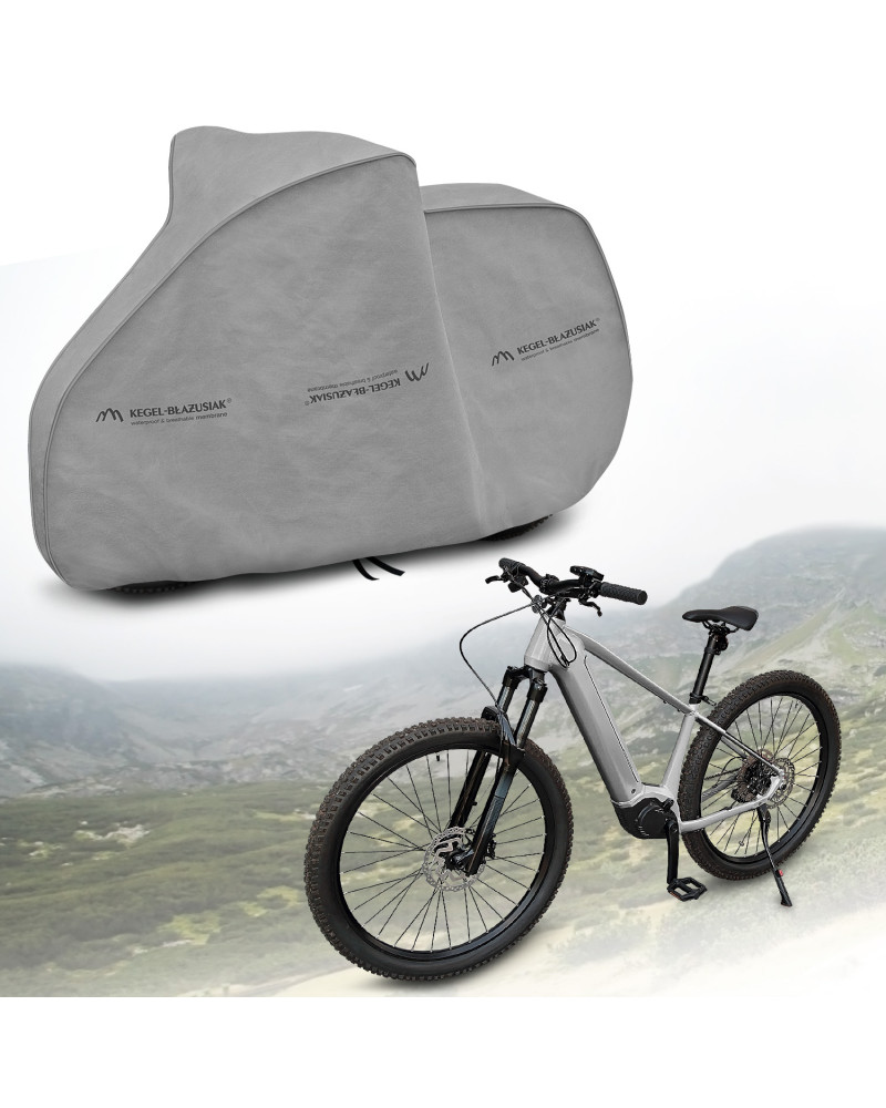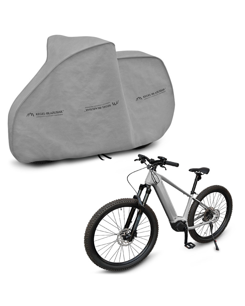 Membrane, waterproof and at the same time vapour permeable cover to protect your e-bike from adverse environmental influences. Weatherproof cover made entirely from a highly vapour-permeable membrane. Impermeable even in heavy rain and at the same time vapour permeable, it transports moisture away from under the cover. Reduces corrosion and ageing of plastic parts, protects against fading and tarnishing of paintwork and chrome parts. Suitable for short-term outdoor storage of the bicycle. An elastic puller, attached to the cover, makes it easy to put it on and take off the bike. Extra attachments to wheels and the fastener placed underneath prevent the cover from being ripped off by the wind. Also suitable for indoor use and for a bicycle without an electric drive.