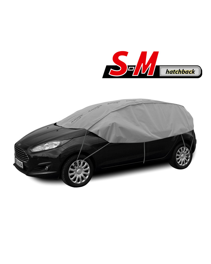 The high-quality material is durable and strong. The covers are grey, which is extremely practical and looks great at the same time. The product is suitable for both temporary and long-term use. Designed for car owners who do not have the possibility of garaging their cars and leave them outside for longer periods of time. The product is very easy and quick to install. Simply hook the elastic loops of the cover, which are finished with secure hooks, onto the rims, the lower edge in the middle of the car and the lower edge of the rear bumper (installation instructions below). The cover stays firmly attached to the car and does not move even in gusty winds. When folded, the cover does not take up much space, so you can always carry it with you.