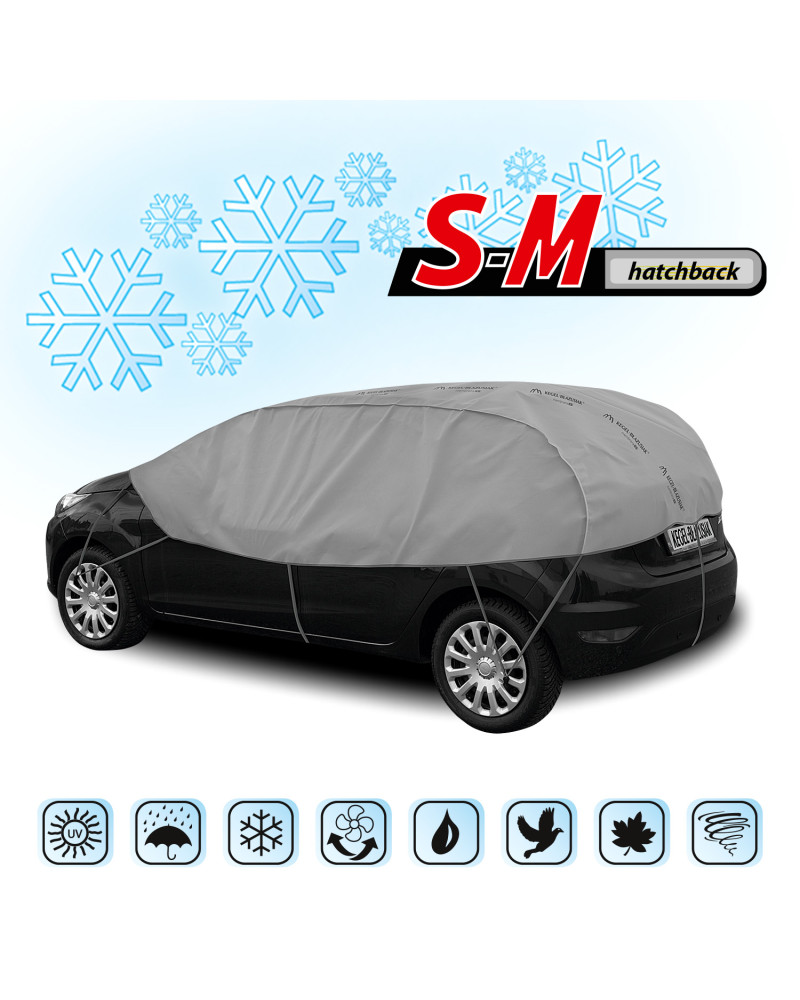OPTIMIO protective half-covers will protect the roof, windows and mirrors of your parked car from frost and snow in winter. They cover the car door handles and locks, preventing them from freezing. They do not freeze to the car. They also protect against tree sap, bird droppings, dust deposits and even UV rays. Therefore, they can be used at any time of the year.