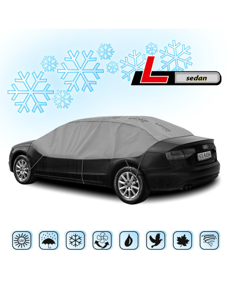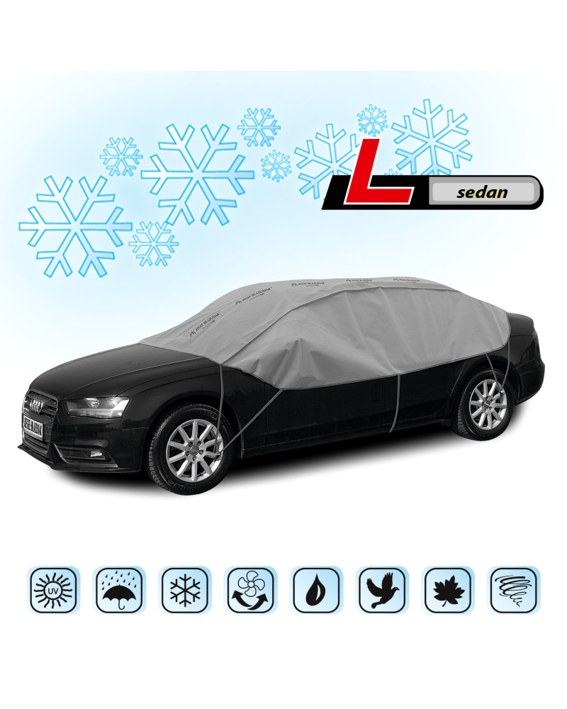 OPTIMIO protective half-covers will protect the roof, windows and mirrors of your parked car from frost and snow in winter. They cover the car door handles and locks, preventing them from freezing. They do not freeze to the car. They also protect against tree sap, bird droppings, dust deposits and even UV rays. Therefore, they can be used at any time of the year.