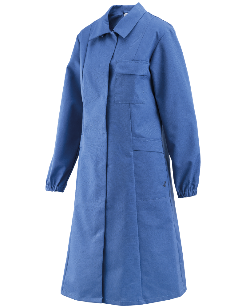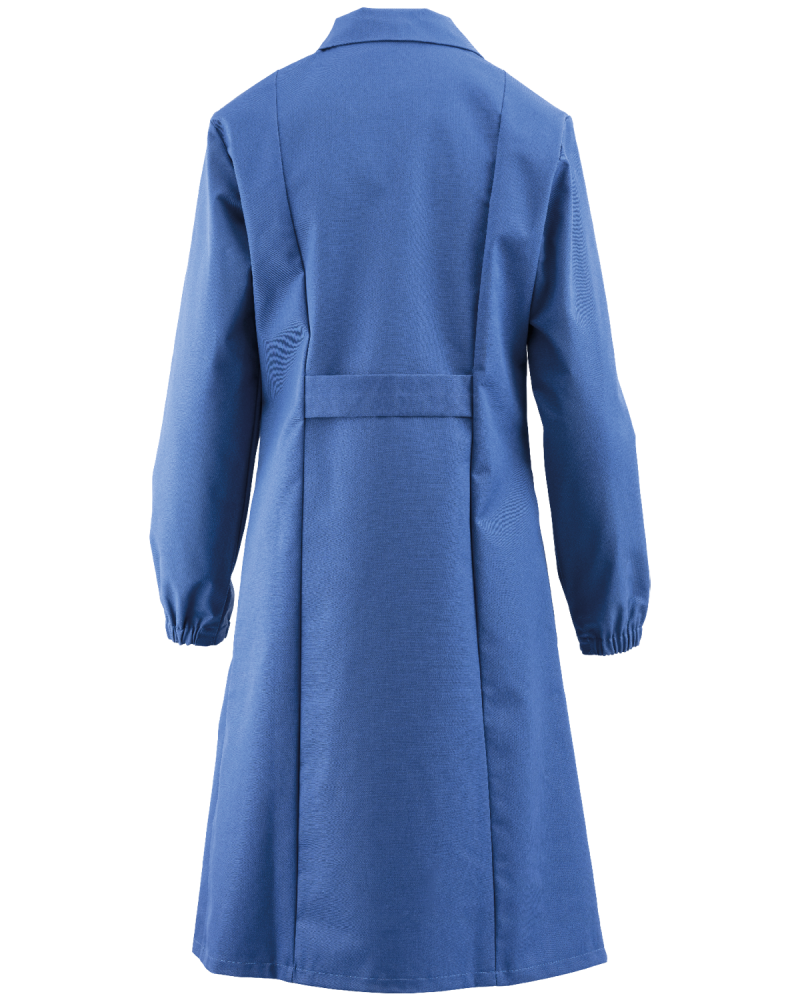 The lady lab coat in blue from the Protective collection ensures safety and protects the user from liquid chemicals in the event of splashing. The garment is made of high-quality materials — Klopman fabric with an acid-resistant finish for durability and long-term use.