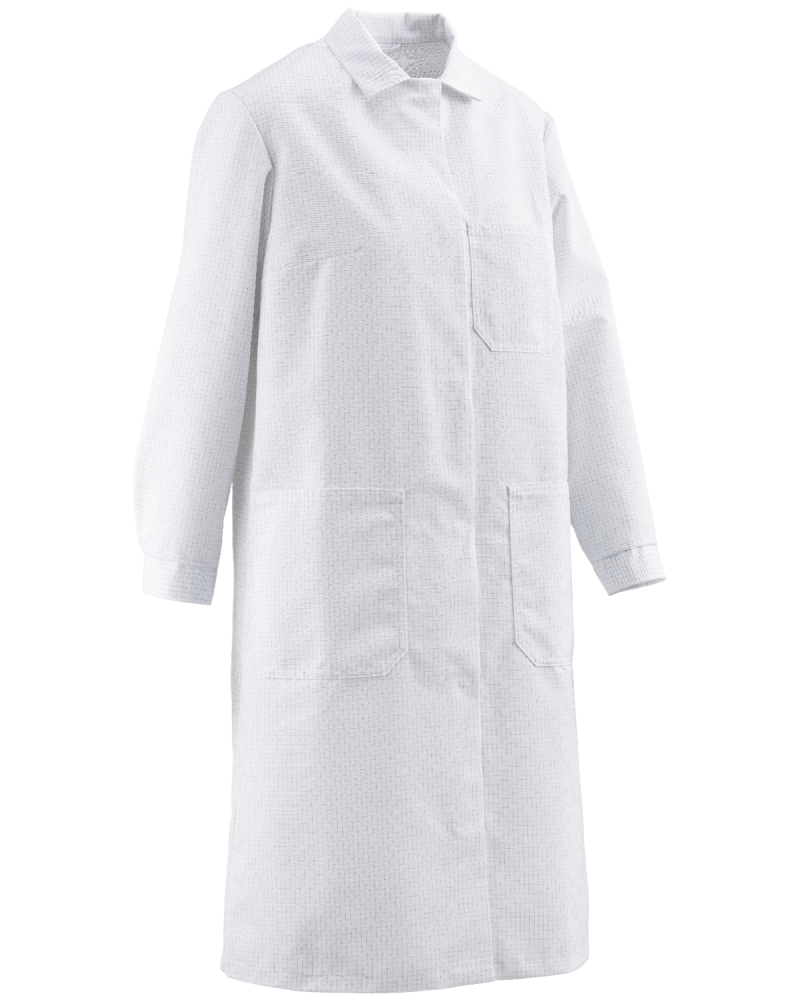 The ESD anti-static women's lab coat from the Protective collection keeps you safe and gives you protection in areas where there's a risk of explosion, high dust levels, or gas and vapour mixtures. Ladies' antistatic coat sewn from top-quality fabrics – Klopman with antistatic thread for strength and durability. Clothing manufactured using modern technologies to ensure comfort, durability and safety when worn.